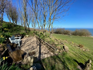 Situated in our wild flower meadow. Seating is provided so you can enjoy the peace, tranquility & fabulous sea views